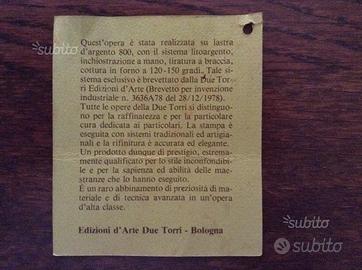Torre dell'orologio di Ostiglia realizzata su lastra d'argento 800 con sistema lito argento inchiostrato a mano e con tiratura a braccia. Certificato edizioni d'Arte due torri di Bologna. Dimensioni cm. 12 x 8. Ingombro totale cm. 32 x 28