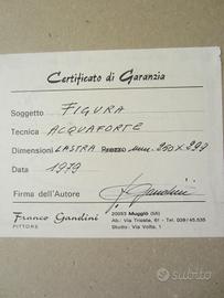 Misura cm. 76 per 56. Con certificato di garanzia. Tecnica acquaforte anno 1979. Stampa in esclusiva. Cornice e vetro senza segni.