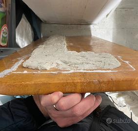 Integro in ogni parte Sostituito per rifacimento cucina, ha forma rettangolare, uno dei due lati corti con le punte arrotondate. Utile come piano di lavoro per cucina si pulisce facilmente ed è estremamente resistente. Misura cm 108,00 x 44,5 x 3,00