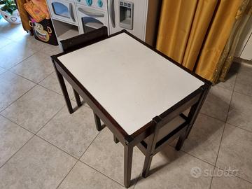Questo tavolo e queste sedie sono perfetti per creare un angolo dedicato al disegno e alle attività artistiche del tuo bambino. Le strutture sono in resistente pino massiccio e le superfici sono riveste in lamina bianca, facile da pulire.