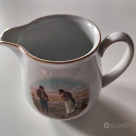 Lattiera o piccolo bricco decorativo da collezione con decalcomania su porcellana.