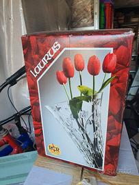 Vaso in vetro. Altezza 30 cm. Diametro inferiore 10 cm e diametro superiore 20 cm Nuovo con scatola impolverata, ma intatta. Solo consegna a mano a Soverato. Prezzo non trattabile