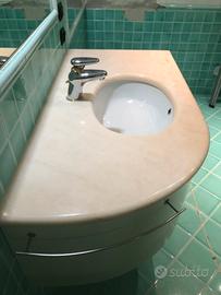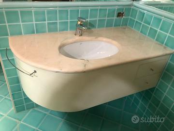 Lavabi con piano in bellissimo marmo rosa, lavandini in ceramica, mobile in legno massello laccato con cassetti e porta salviette, completi di rubinetteria. Vendibili anche separatamente. € 50 CADAUNO Dimensioni: 120cm x 65 cm