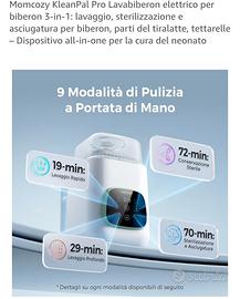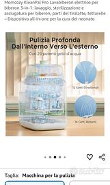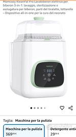 Vendo una praticissima lavabiberon. Come nuova. Usata poche volte (circa 30 cicli). Davvero pratica e utile. Aggiungo un consiglio che può essere utile: si può usare tranquillamente l'acqua del rubinetto. Ogni 15 giorni fare un lavaggio con acido citrico (alimentare) per togliere il calcare. Dettagli del prodotto: Programma automatico 3-in-1: pulizia profonda, sterilizzazione a vapore e asciugatura rapida. Il lavabiberon portatile per biberon di Momcozy lava e igienizza biberon, tettarelle e accessori per il tiralatte in un unico ciclo, facendoti risparmiare fino a 1 ora al giorno. 26 ugelli ad alta pressione: 12 spruzzatori interni fissi + 10 ugelli rotanti rimuovono in modo efficace i residui di latte secco, garantendo un risultato igienico impeccabile, ciclo dopo ciclo. Design ottimizzato a due livelli: il lavabiberon elettrico per biberon di Momcozy offre spazio stabile per 4 biberon e accessori. Protegge le parti sensibili del tiralatte da danni meccanici durante la pulizia. 9 programmi intelligenti + modalità express: scegli tra lavaggio rapido (19 min), sterilizzazione a vapore o modalità di conservazione 72 h. Il lavabiberon automatico di Momcozy elimina il 99,9% dei batteri riducendo al tempo stesso in modo efficace i residui visibili.