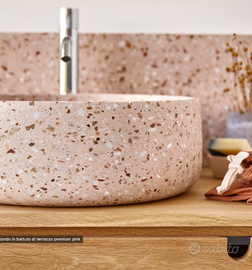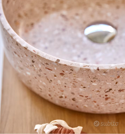 Questo meraviglioso lavabo è purtroppo troppo grande per il nostro bagno e viene quindi rivenduto, ancora imballato nella confezione originale. È di alta qualità e ha un design unico. Prezzo originale da Tikamoon: 429€. Il battuto di terrazzo premium è esteticamente piacevole e ha una grande personalità. È composto al 80% da un materiale pregiatissimo, il marmo, e al 20% da un legante senza resina. Di conseguenza dura a lungo, è resistente e pratico. Dimensioni prodotto : A 14 × L 40 × P 40 cm Peso del prodotto : 15 kg Montaggio : Da appoggio