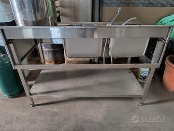 Vendo lavabo professionale in acciaio Inox con doppia vasca e completo di miscelatore.C'è anche un pentolone da 50cm compreso nel tutto.Ritiro a mano