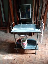 lavabo domestico pezzo di antiquariato completo di specchio, anfora e contenitore acqua