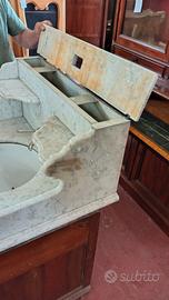 lavabo antico in marmo finemente lavorato su mobiletto in noce profondità dalla parete 65cm larghezza circa 85 90 spedizione a carico dell'acquirente