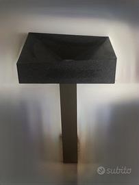 Lavabo Twist MIPA interamente in graniglia di marmo, completo di piletta a scarico libero in acciaio inox spazzolato e di staffa a colonna sempre inox spazzolato. Dimensioni 50x40 h.14 più la colonna. Può essere montato con la colonna inox o in appoggio su un piano, presenta una piccolissima scalfittura, appena visibile,nella parte posteriore che va a muro. Prodotto di altissimo valore estetico adatto a chi vuol rendere unico è pieno di personalità il proprio ambiente bagno. Prodotto nuovo, mai utilizzato usato soltanto a fini espositivi. Lavabo solo per veri intenditori.
