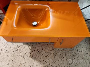 Lavabo bagno sospeso in vetro misure 90x53 altezza 41 cm. Il vetro è di spessore di 1,2 cm circa ed è come nuovo mentre il mobile presenta piccoli segni di usura in qualche angolo nascosto, trascurabile e facilmente riparabile.