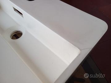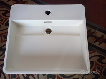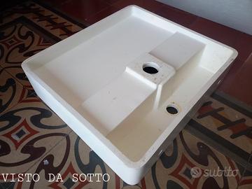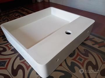 Lavandino da appoggio in resina , bianco opaco, misure Larghezza 48 cm Profondità 43 cm Altezza 12 cm Presenta solo una piccola crepa (vedi foto), che non compromette il funzionamento.