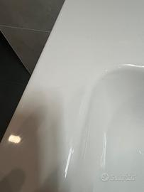 Come da titolo vendo lavabo bagno da incasso di lunghezza 100 cm con scheggiatura (come da fotografie). Il lavabo é stato usato solo un paio di mesi. Viene venduto ESCLUSO miscelatore e piletta di scarico. Le ulteriori misure sono indicate nelle foto. Ritiro e pagamento a mano a Bra (CN). Prezzo richiesto 60 euro
