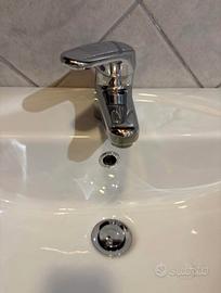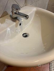 Lavabo a colonna per bagno in ceramica Bianco come nuovo compreso di miscelatore e piletta.