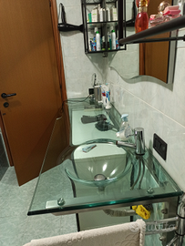 Splendido lavabo in cristallo. Sul lato sinistro, presenta una rientranza di qualche centimetro per l'apertura della porta.