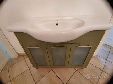 Lavabo Bianco misure 95x50(la parte sporgente della vasca)x38(lati piu stretto del lavabo).Compreso di mobiletto se interessa costo 0.