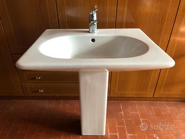 Vendo Lavabo bagno a colonna in ceramica bianca “Dolomite” completo di miscelatore funzionante. Misure 70x55. Ritiro sul posto (Serravalle Sesia)