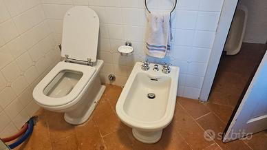 Lavabo Bidet WC con tavola Calla Ideal Standard, completi di rubinetteria Azimuth Ideal Standard. Perfetti. Lavabo semitondo introvabile.