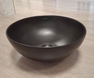 Lavabo Sopratop tondo in ceramica nera opaca senza troppopieno nè foro miscelatore.