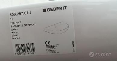 LAVABO con rubinetto marca Geberit modello SELNOVA - Materiale: vetrochina Lunghezza/Profondità (cm): 50 Larghezza (cm):65 Altezza (cm):18,5 Peso (kg): 15 CONDIZIONE OTTIME, RIMOSSO DAL COSTRUTTORE PER CAMBIO LAVABO