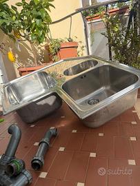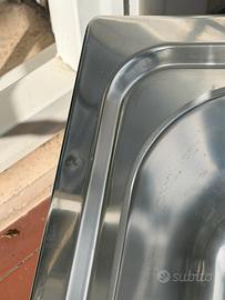 Vendo lavabo cucina della Smeg. Ha un’ammaccatura sul bordo come indicato in foto. Dotata di un gocciolatoio e 3 vasche; di cui due 33x40cm circa e una 16x30 cm. Ingombro massimo 82x82cm. Prezzo trattabile.