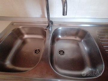 Lavabo cucina marca Franke in acciaio, 2 vasche più sgocciolatoio, Misure 116 cm x 50 cm compreso di miscelatore marca Paini come da foto. Da incasso.