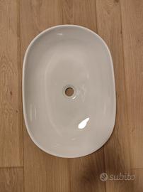 Lavabo d'appoggio in ceramica bianca. Nuovo, mai usato. Misure: cm 60x42 profondità cm13. Ritiro a carico dell' acquirente, no spedizione. Zona Mestre-VE