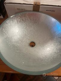 ‼️Vendo lavabo da appoggio 42x14cm mai usato, in vetro con foglie d’argento, ancora nella scatola.
