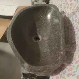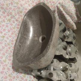 Si tratta di un lavabo da appoggio in pietra lunghezza 48 cm profondità 32 cm. Design - Ovale irregolare, ideale per l'installazione su piano di lavoro.