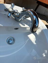 Vendo lavabo da bagno in ceramica bianca con incluso set di 2 rubinetti (uno per il lavandino e uno per il bidet).