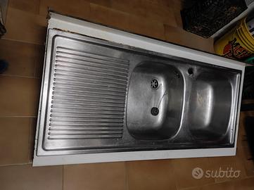 Vendo lavabo da cucina usato 2 vasche con scivolo. Misure cm 0.50 x 116 più cornici legno Ritiro c/o il mio domicilio