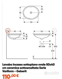 Lavabo da incasso sotto piano ovale 50x40cm in ceramica sotto smaltata. Serie Variform - Geberit.