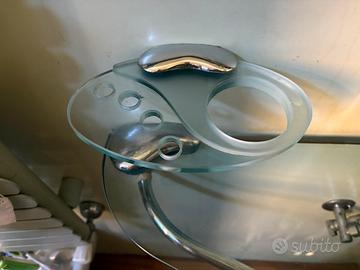 – porta sapone in vetro satinato con porta asciugamani integrato