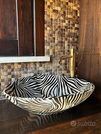 Lavabo di design da appoggio ceramica zebrata nero made Italy Animals