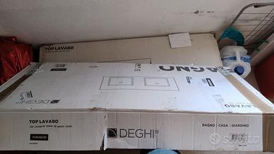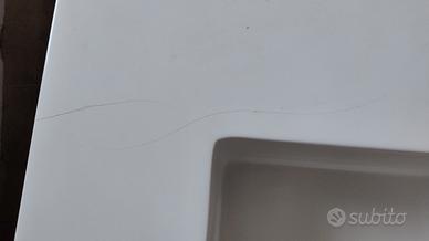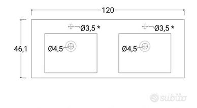 Vendo lavabo consolle a doppia vasca, colore bianco opaco in resina/mineral marmo. *Misure*: 120 x 46,1 cm. Predisposto per 2 miscelatori con fori Ø3,5 cm e scarichi Ø4,5 cm. Mai montato, venduto per cambio progetto. *Nota sul difetto*: Presenta una crepa molto superficiale sul piano, lato sinistro vicino alla vasca. È puramente estetica, non passante e non influisce su funzionalità o tenuta all’acqua. Visibile solo da vicino. Prezzo ribassato solo per questo. Perfetto per mobili bagno moderni da 120 cm.