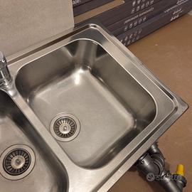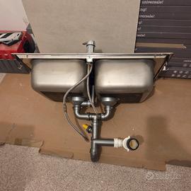 Lavabo doppio in inox misure 86x50. In buone condizioni. Completo di rubinetto, tubi di mandata e di scarico