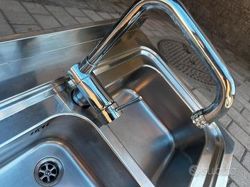 Lavabo cucina acciaio inox doppia vasca 60 x 120 cm ,completa di miscelatore .
