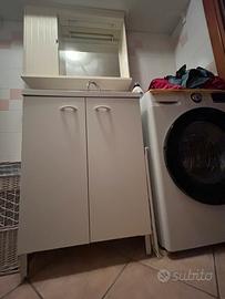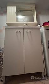Mobiletto con specchio e luce e lavabo lavatoio per biancheria da lavanderia.