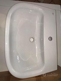 Lavabo 650x465x190 mm con finiture bianco lucido, 1 foro della rubinetteria, con troppopieno.