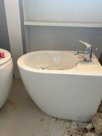 Vendo lavano freestanding e bidet bianchi in ceramica compresi i due rubinetti.