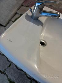 Vendo lavabo in ceramica bianca, marca GSI, completo di rubinetteria e meccanismo di scarico già montati.