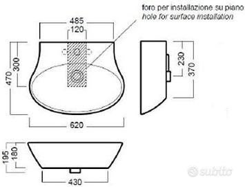 Lavabo da 62cm in appoggio o sospeso a muro(in questo caso è completo di semicolonna)