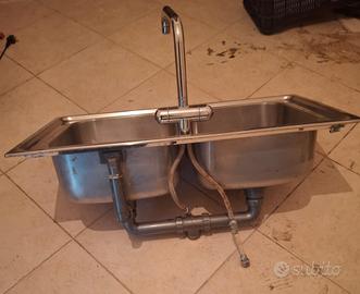 lavabo in acciaio 2 vasche per cucina o altro con rubinetto vendo 80€ trattabile