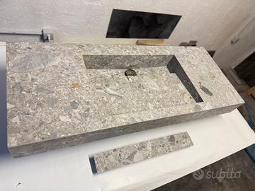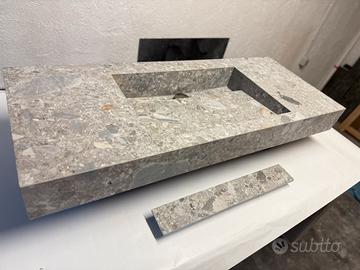 Vendo lavabo nuovo in gres porcellanato grigio effetto pietra, pezzo artigianale con con scarico a scomparsa.