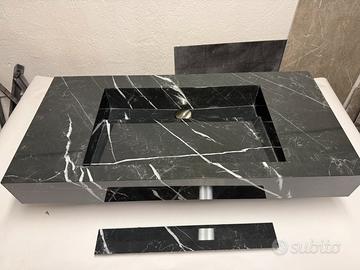 Vendo lavabo nuovo in gres porcellanato nero lucido con venature bianche, pezzo artigianale con scarico a scomparsa.