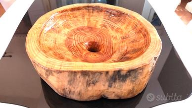 Lavabo completamente fatto a mano. Legno di recupero da tronchi di larice e pino. Pezzi unici . Diametro da 40 a 50 cm. Legno impermeabilizzato con resina speciale . Eterno.
