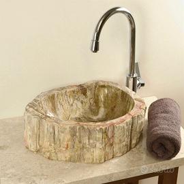 Poiché si tratta di un prodotto artigianale, ogni lavabo in legno pietrificato è un pezzo unico da collezione, caratterizzato da crepe e cavità formatesi nel corso dei millenni, trattate con resina naturale per migliorarne durata e stabilità.