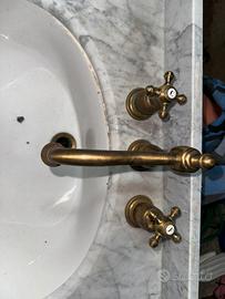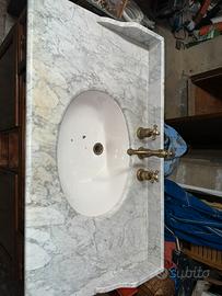 Lavandino in perfette condizioni, munito di rubinetteria, lavandino e specchio. Sono presenti tutti i pezzi. Pianale in marmo