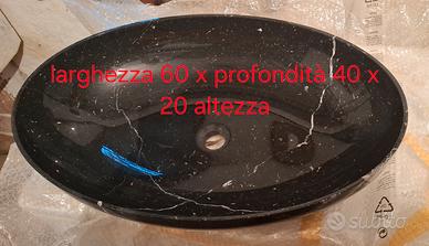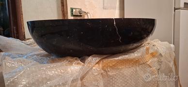 Lavabo in vero marmo nero zebrato, con forma ovale. Pezzo unico.