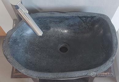 REALIZZATO IN PIETRA DI FIUME LUCIDATO INTERNAMENTE E SUL BORDO LASCIATO NATURE ESTERNAMENTE A MEMORIA DELLA MATERIA ORIGINARIA