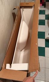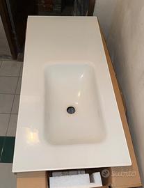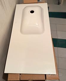 Lavabo in vetro bianco con vasca integrata Misure totali lunghezza 106 cm larghezza 50,5 cm Misure vasca interna lunghezza 50 cm larghezza 30 cm Sbeccato ma non staccato del tutto angolo superiore lato destro come mostrato in foto